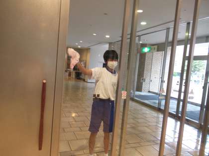生徒は、館内清掃を行った後に、総合受付を担当しています。