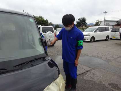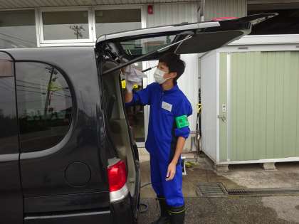 今日は洗車を行っています。隅々まで、きれいに拭き上げています。