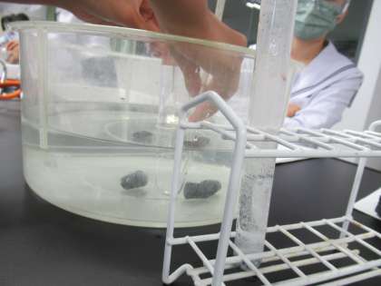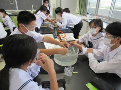 10月7日(金) 1年生 理科 気体を集めよう 公開日 2022/10/07 更新日 2022/10/07 1学年 水上置換法で気体を発生させています。 二酸化マンガンにオキシドールを入れて、、、ぶくぶくと泡が出てくるはずですが、、、。