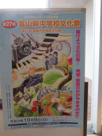 本日、10月9日(日)富山県中学校文化祭が富山県高岡文化ホールで開催されます。