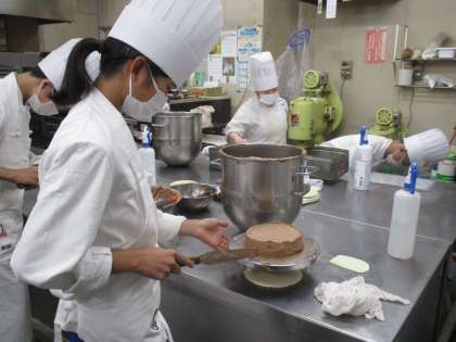 ケーキにクリームを塗る作業では、「ここをもう少しぬったほうがいいよ!」「うまくなったね!」など、お互いに声を掛け合っています。