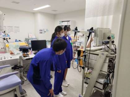内視鏡の使い方や洗浄の仕方について学んでいます。