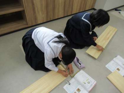 10月12日(水) 1年生 授業の様子 公開日 2022/10/12 更新日 2022/10/12 1学年 写真上・中は、技術の授業の様子です。 本棚をつくることがゴールです。板に線を書き入れています。技術室で広々と作業中です。 写真下は、美術の授業の様子です。 まずは、タイピング練習から、、、。特別教室にも校訓が掲げられています。