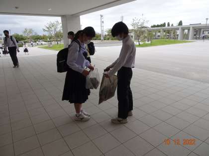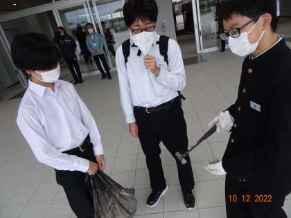 10月12日(水) 3年生 その後のYCP 公開日 2022/10/12 更新日 2022/10/12 3学年 10月の毎週水曜日はYCP《八尾クリーンプロジェクト》の日です! 2週目になると、通学路のゴミを積極的に拾う3年生の姿が増えてきました。 来週もボランティアに参加する生徒が増えるとよいですね! 1、2年生の皆さんも、もちろん参加OKです。大歓迎です!YCPの活動が全校に広がると素敵です!