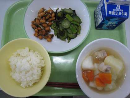 10月14日(金) 今日の給食は? 公開日 2022/10/14 更新日 2022/10/14 八尾中学校のページ 今日のメニューは、 1 ごはん 2 牛乳 3 小魚入りフライビーンズ 4 海藻サラダ 5 ポトフ です。 「ポトフ」はフランス語で「火にかけた鍋」という意味です。鍋に肉の塊や野菜を入れてじっくりと煮込むフランス料理です。今日の給食は豚肉ですが、本来は牛肉を使うそうです。これからの寒い時期、温かいものを食べて栄養をとりましょう。