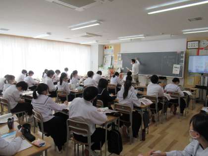 写真中は、社会科の授業の様子です。