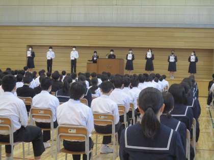 生徒会役員任命式のあとに、後期生徒会から承認された専門委員長の委嘱式が引き続き行われました。