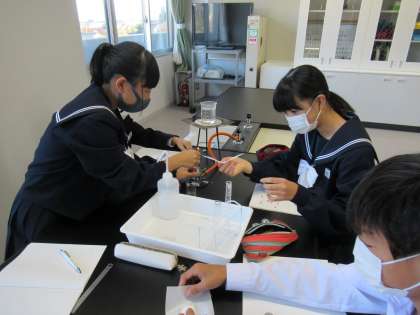 ビーカーに水を入れて沸騰させ、試験管をその中で温めて観察します。
