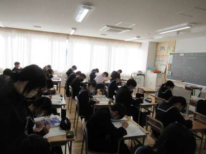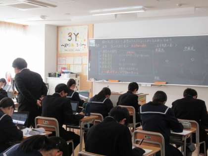写真下は、理科の授業の様子です。力の分解、合成の問題にチャレンジしています。