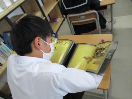 10月27日(木) 1年生 美術 風神雷神屏風絵図から想像しよう