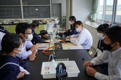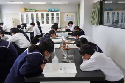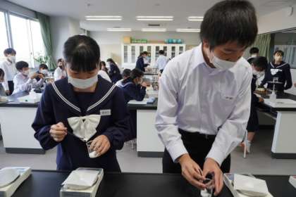 水溶液から結晶が出てくる様子に生徒たちは興味津々です。