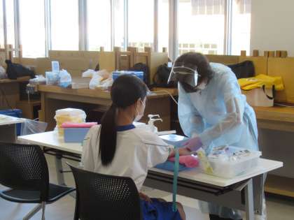 医師会の方から説明を受け、いざ採血へ・・・。