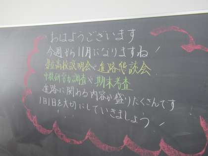 体育大会、文化活動発表会と2学期の大きな行事も終わりました。11月は中教研学力調査、2学期末考査があり、より一層学習に励む月になりそうですね。