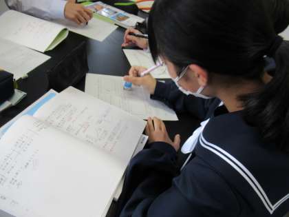 ペアで考えを伝え合ったり、全体の前で紹介し合ったりして確認しました。