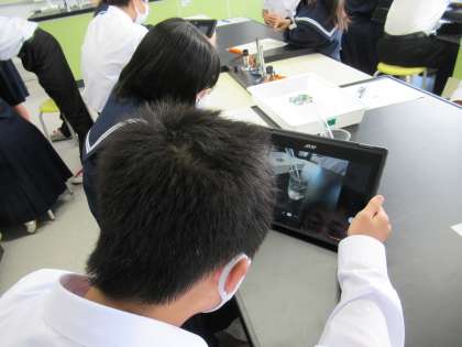 雪が積もるかのように、次々と結晶が出てきて生徒は感動しています。