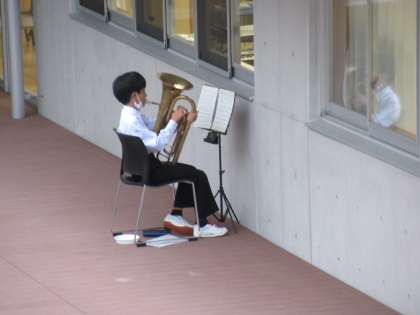 吹奏楽部は、「学びのニワ」を活用し、自主練習中です。