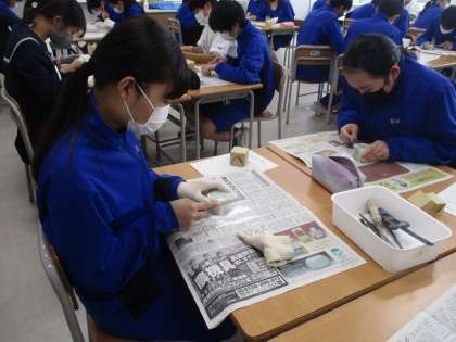 11月4日(金) 3年生 美術科 石彫「心和むカタチ」