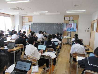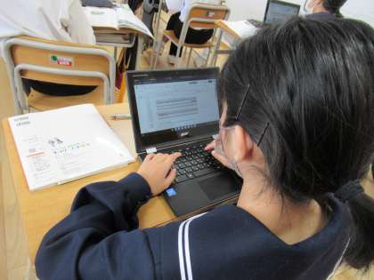 考えたことをchromebookのスプレッドシートに書き込んでいます。みんなの考えが一目瞭然ですね。