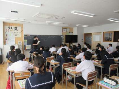 今日は、実況中継できるようになろうという目標をもって、現在進行形を使って表現する学習をしています。