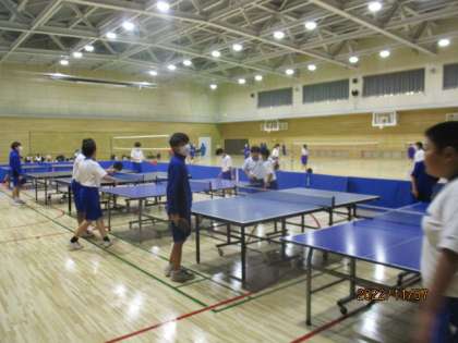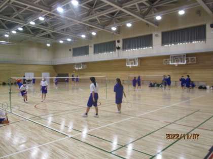 体育館では、卓球部、バレーボール部、バドミントン部が活動しています。