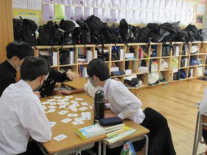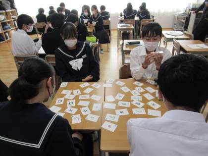 地図記号カルタをして、楽しみながら地図記号を覚えています。