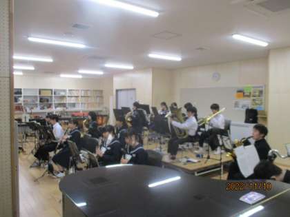 サッカー部は基礎練習、吹奏楽部はクリスマスに向けて演奏をがんばっています。