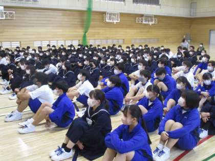 2年生の皆さん、3年生はいよいよ受検に向けて、本格的に進路選択が始まります。1年後、みなさんが同じ立場になることを想像してください。そのときになって後悔しないために、今から真面目に取り組んでほしいと思います。