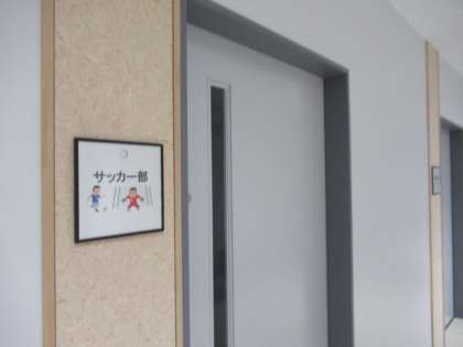 新しく各部室にネームプレートが設置されました。スクールサポートスタッフさんの手作りです。イラスト入りで素敵ですね。