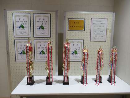 体育大会、合唱コンクールで受賞したクラス、トロフィーを学校ギャラリーに展示します。