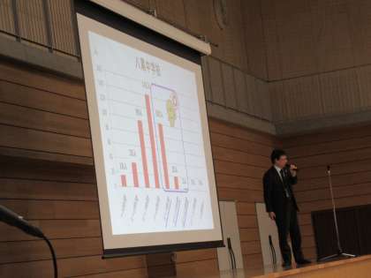 なんと!八尾中で寝る直前にスマホやゲームをしている生徒が、363名、全体の86.4パーセントもおり、全国平均をかなり上回っています。