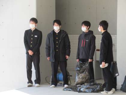3年学年生徒会が、YCP活動として、ゴミ集めの呼びかけをしています。募金活動のように、大きな声で「ゴミありませんか」「ゴミ集めています」と呼び掛けています。