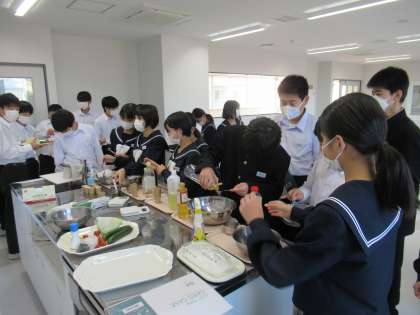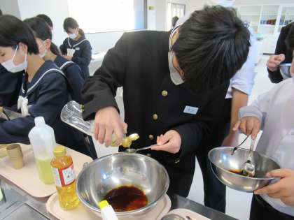 朝のうちに準備をしておくことで、スムーズに調理にとりかかることができる!と考えて協力して調味料を測っています。見通しがありますね。