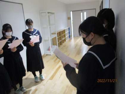 広報委員会の大きな活動である給食時間中の放送について、委員全体で明日からの活動を確認しています。新体制なので、委員長を中心に入念な確認を行っています。