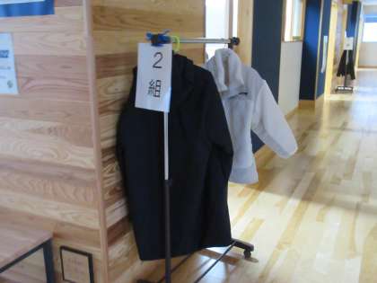 3年生の各教室前には、コートをかけるラックが登場しました。