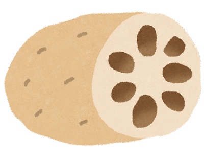 れんこんの穴は、れんこんが呼吸をするために開いています。 れんこんは、「蓮田(はすだ)」という泥沼の中で育ちますが、酸素を取り入れるために水上の葉とつながっており、穴を通して酸素を取り込んでいるのです。なるほど!