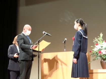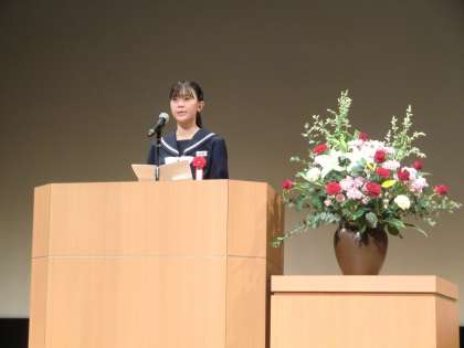 この作文コンクールで本校2年生の生徒が最優秀賞を受賞し、会場で作文の朗読を行いました。