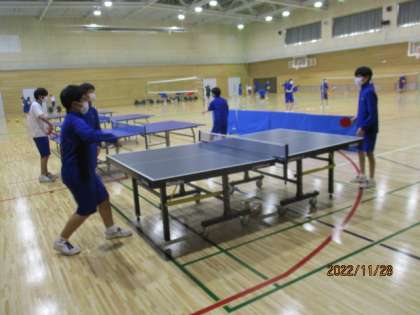 体育館では、卓球部、バドミントン部、バレーボール部が元気よく活動しています。期末考査が終わり、1週間ぶりの部活動です。