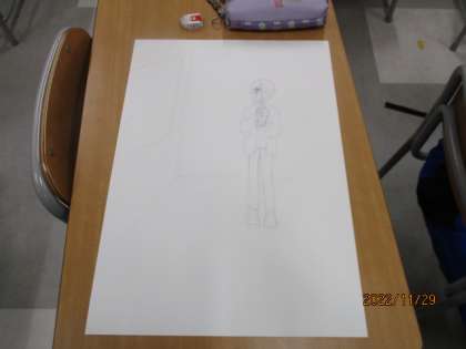 読書感想画の下書きを進めています。何の本の感想画か分かりますか。