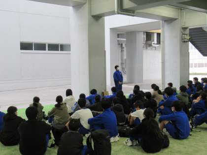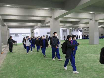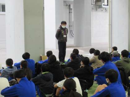 ピロティで出発式を行いました。教頭先生から、校外学習で必要な3つの「き」を教えていただきました。「げんき」「やるき」そして「てんき」です。残念ながら3つめの「てんき」は雨ですが、「げんき」「やるき」で乗り切ってほしいと話されました。