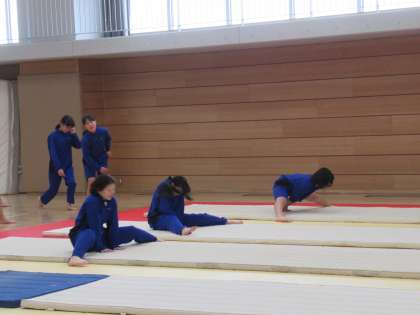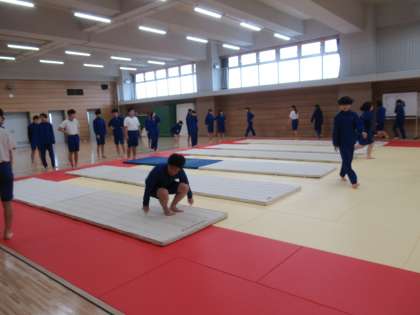 前転、開脚前転、、、と準備運動を兼ねて次々と回っています。