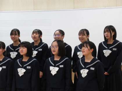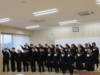 3年生の有志と後期生徒会執行部の合唱隊が学校を代表して校歌を歌いました。さすが選抜合唱団、素晴らしい歌声です。
