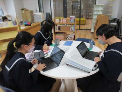 写真上は、朝からYMCで頑張っている3年生(常連さんの3人です)の様子です。