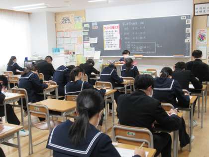 写真下は、テストに取り組む3年生の様子です。