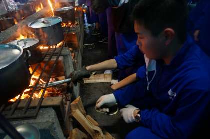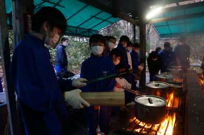 到着後、入所式を行い、すぐに野外炊飯に取りかかりました。