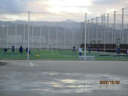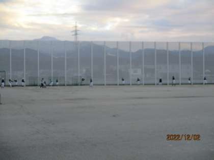 ソフトテニス部、野球部、サッカー部はグラウンドで、寒さにも負けず、元気いっぱいに活動しています。