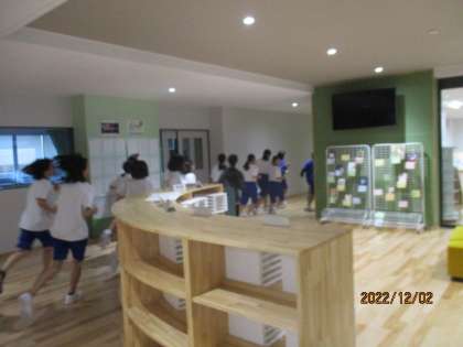 2階棟を利用し、ランニング中です。校舎が広いので、走りがいがありますね。