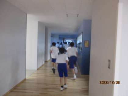 校舎3階でランニング中です。広い校舎を最大限に使っています。