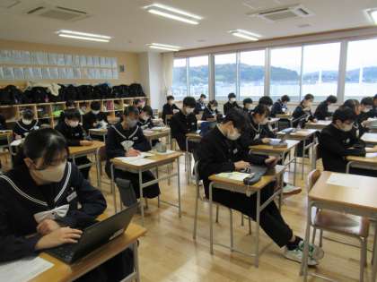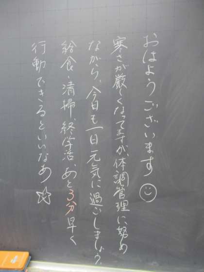 朝の会が始まる前ですが、全員着席し、chromebookに昨日の学習時間を入力したり、読書をしたり、自習したり、、、とし〜んとしています。落ち着いて朝の時間を過ごしています。