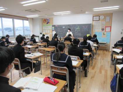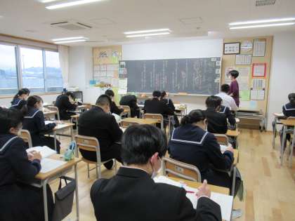 12月8日(木) 3年生 授業の様子 公開日 2022/12/08 更新日 2022/12/08 3学年 写真上は、国語の授業の様子です。 古今和歌集を基に、和歌について学習しています。 意味を読み取ったり、三句切れ等の技法を学んだりしています。 写真中・下は、数学の授業の様子です。定理について学習しています。
