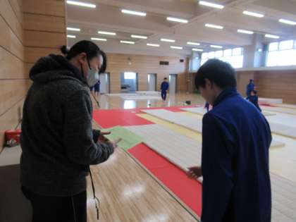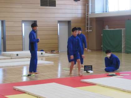 12月9日(金) 3年生 保健体育 マット運動 公開日 2022/12/09 更新日 2022/12/09 3学年 チャレンジシートを手に、それぞれの技を先生にチェックしてもらっています。 それぞれ技の練習をしています。chromebookで撮影しながら、互いに助言し合う姿も見られます。